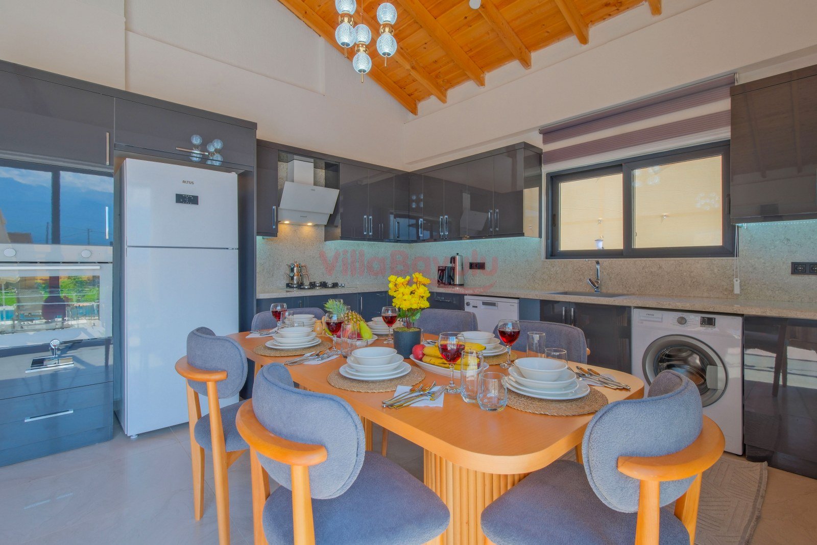 Konaklamak istediğiniz villaya giriş yaptığınız andan itibaren o villa sizin eviniz gibidir. Villalarda yemek servisi yapılmamaktadır ancak kendinizi evinizin mutfağında hissedeceğiniz ölçüde mutfak araç ve gereçleri bulunmaktadır. Dilediğiniz yemeği yapabilir, aşçılığınızı konuşturabilirsiniz. Tatili geçirdiğiniz kişilerle birlikte yemek yapmayı deneyimleyebilirsiniz.