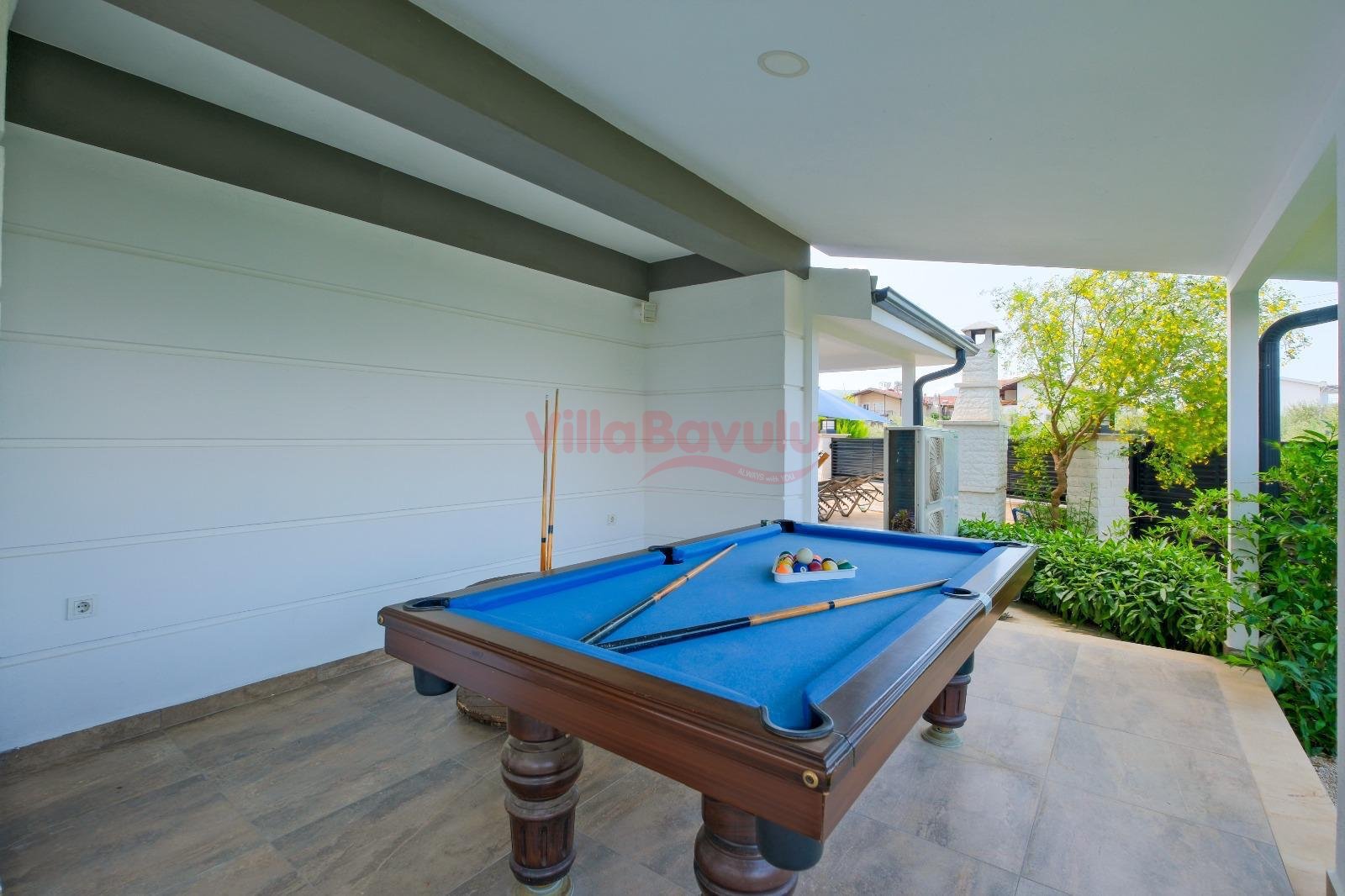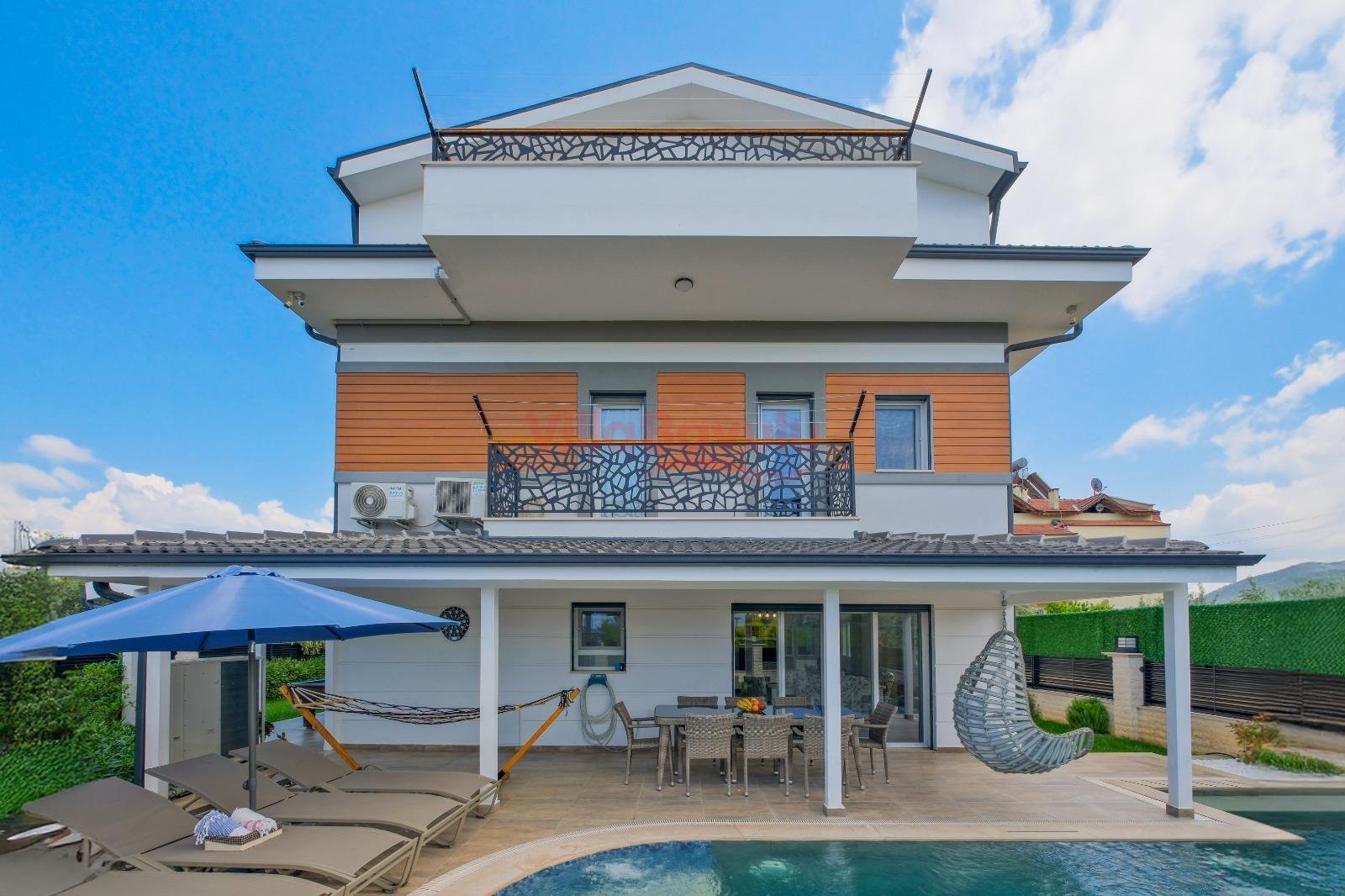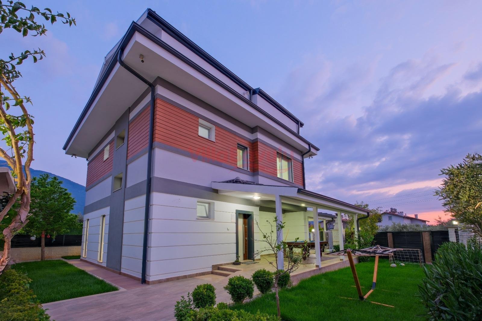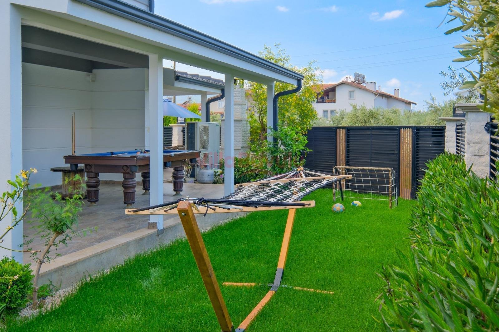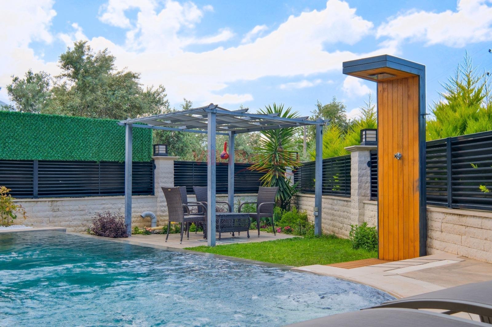 Geniş bahçesiyle çocuklu aileler için oldukça uygun olan villa, sizlere Fethiye merkeze, turizm noktalarına ve denize yakın bir konumunda, mola vaadetmektedir. İhtiyaçlarınız düşünülerek dizayn edilmiş bahçe alanı geniş havuz terasına sahip ve kullanışlı havuz bulunmaktadır. Havuz bahçe alanında kapasiteye uygun şezlong takımı, oturma grubu ve barbekü bulunmaktadır. Konforunuz gözetilerek tasarlanmış olan havuz alanına açılan ferah oturma odası, tam donanımlı açık mutfak; dört yatak odasında çift kişilik yatak; diğer iki yatak odasında da tek kişilik iki adet yatak bulunmaktadır. Villa, ihtiyaçlarınıza karşılık verecek donanıma sahiptir.