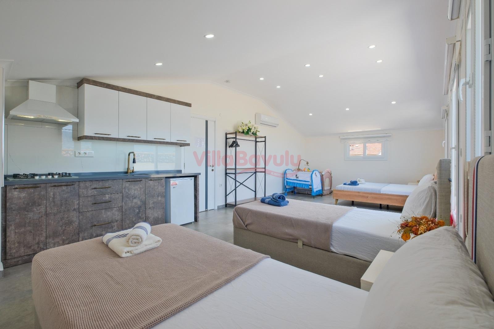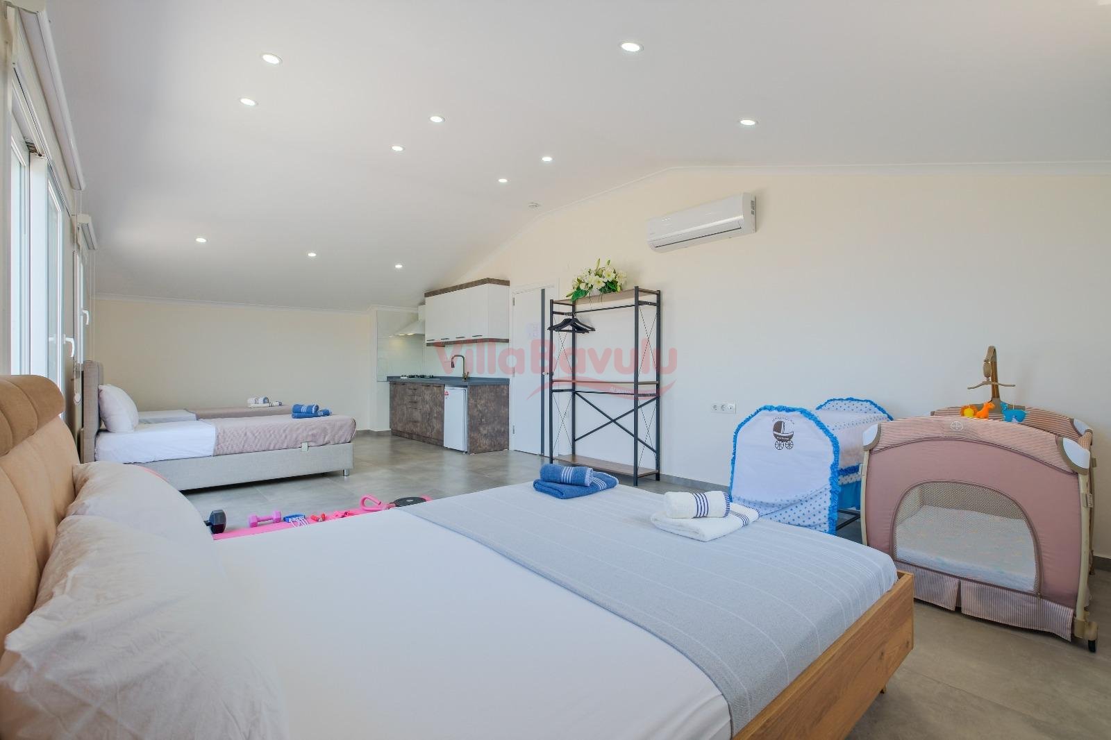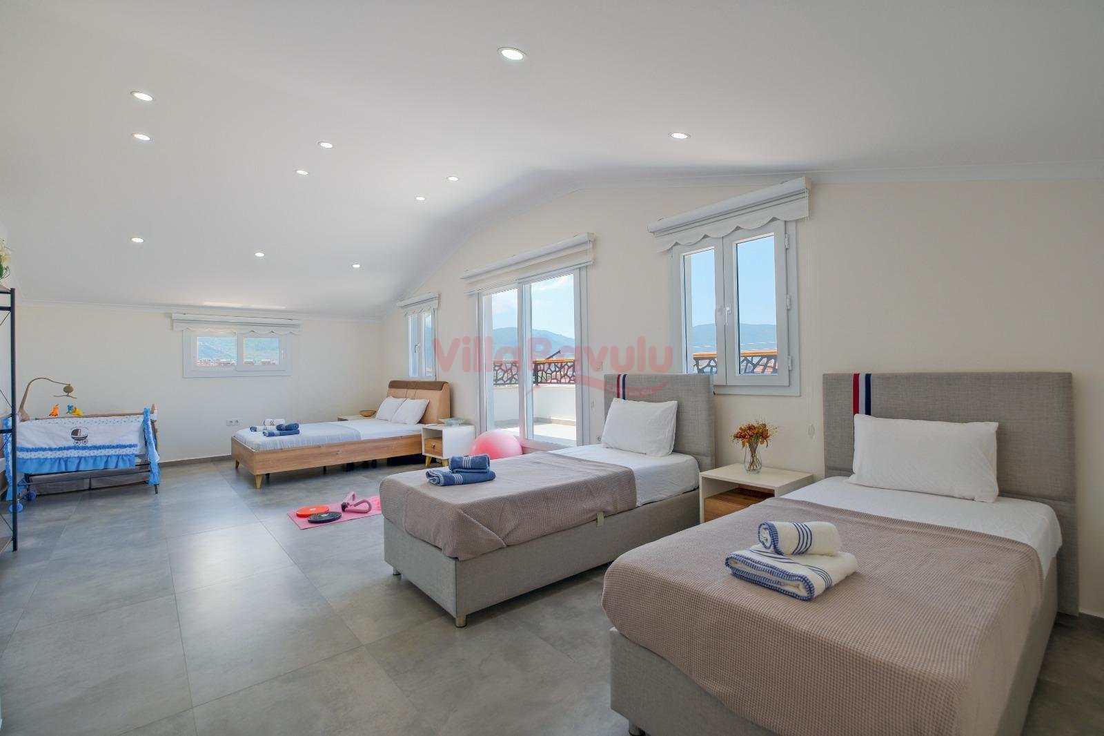 Kapasitenin çok üzerine çıkmayacak şekilde gelen talepler villa sahibi/sorumlusundan onay alınarak zaman zaman kabul edilebilmektedir. İstisnai olarak bu şekilde gerçekleşen rezervasyonlarda kapasite üzeri konaklayacak misafirler için ekstra yatak, şezlong vb gibi donanımlar sunulmayacaktır.