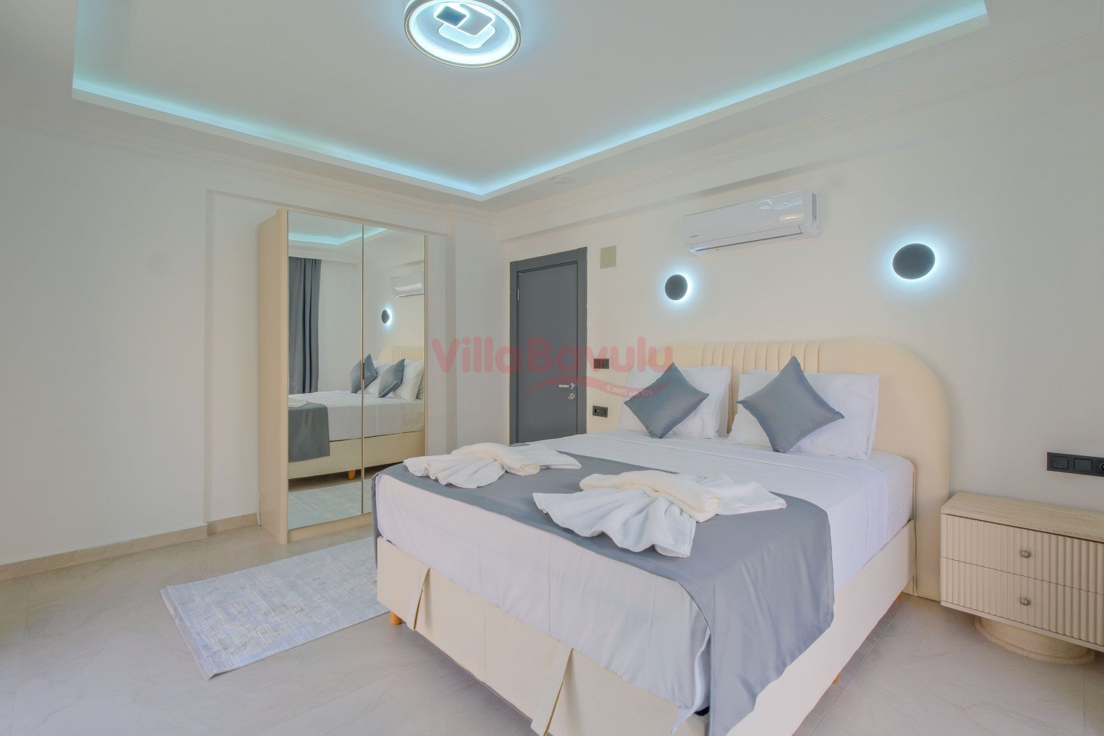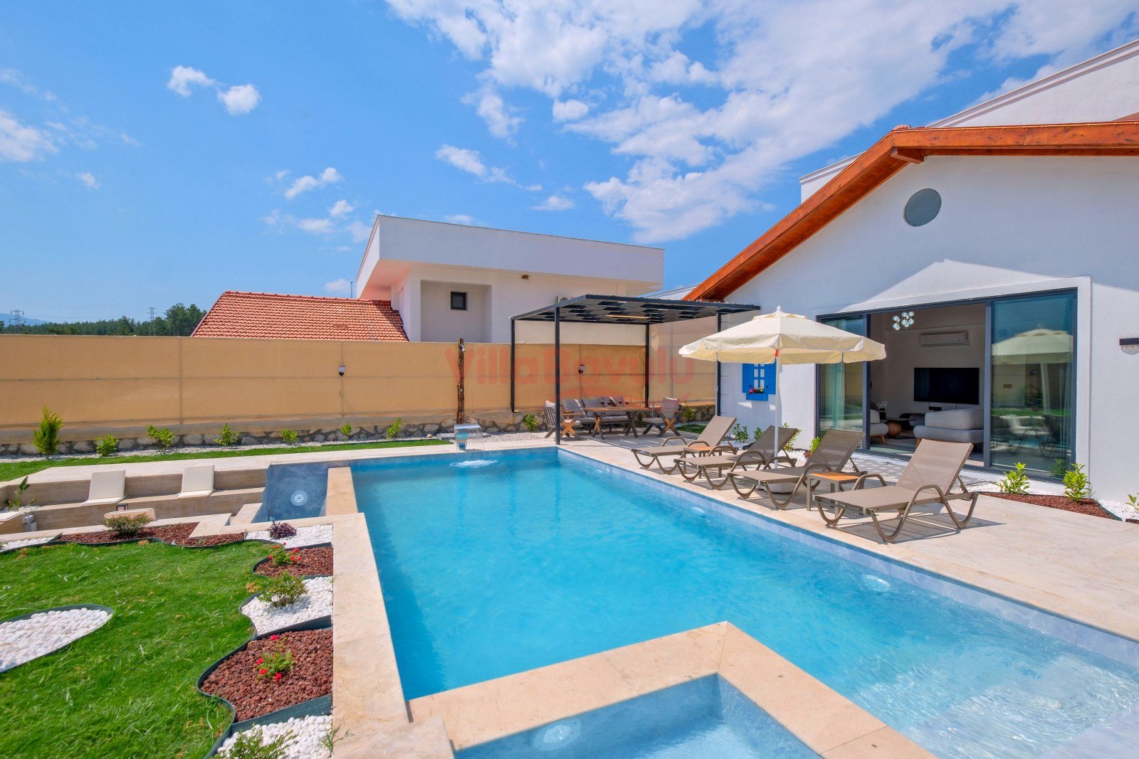 Fethiye Seydikemer  Çaltıözü mevkiinde bulunan villa, 4 yatak odasıyla 8 kişilik konaklama kapasitesi sunmaktadır. Korunaklı havuz alanına sahip olan villa, muhafazakar tatil için ideal seçeneklerden bir tanesi olup kalabalık aile ve arkadaş grupları için uygundur.