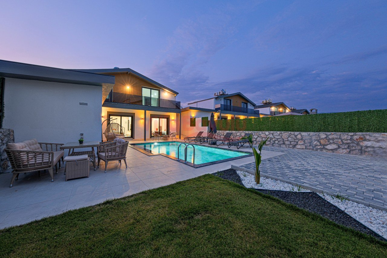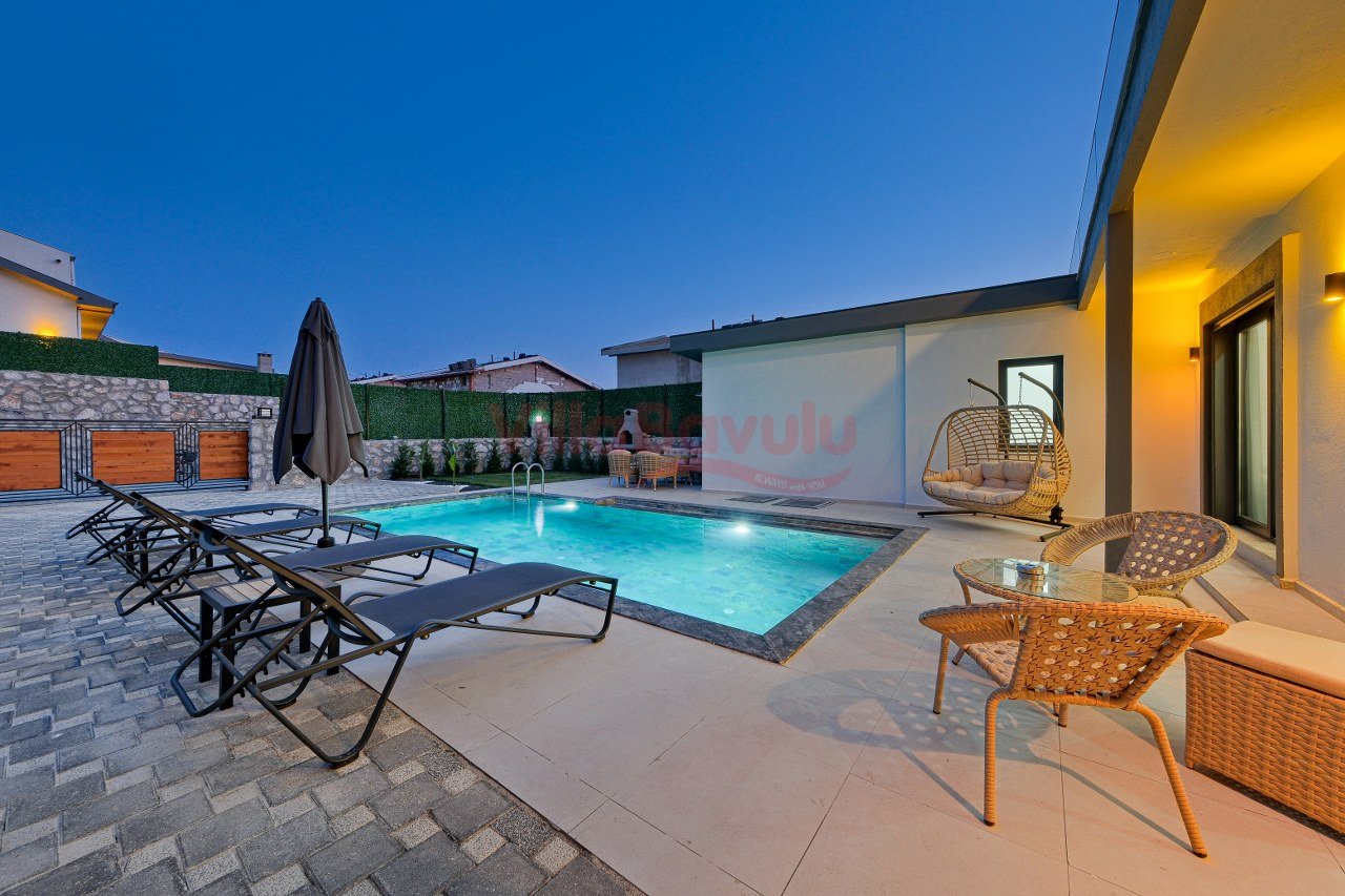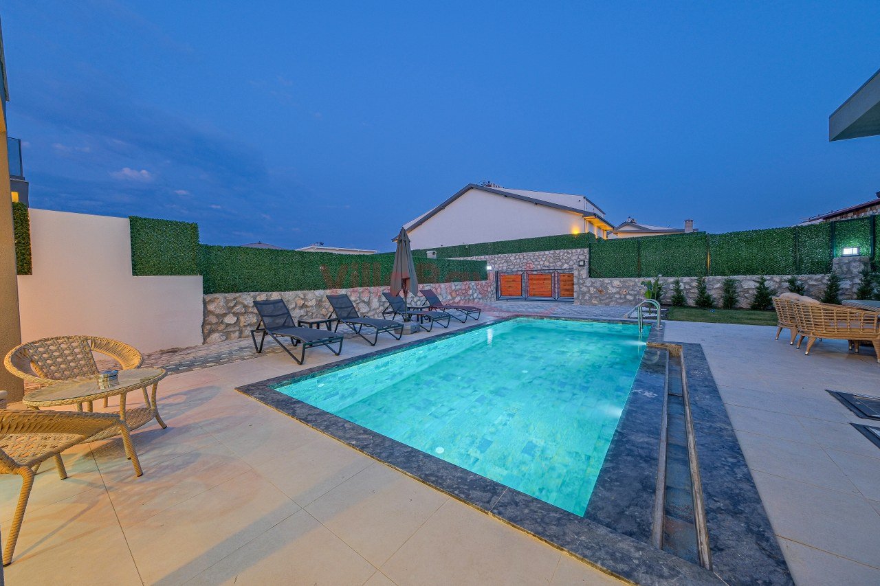 Fethiye Kargı  mevkiinde bulunan villa, 3 yatak odasıyla 6 kişilik konaklama kapasitesi sunmaktadır. Korunaklı havuz alanı ve çocuk oyun alanı ile dikkat çeken villa çekirdek aile ve balayı çiftleri için ideal seçenekler arasında yer almaktadır.