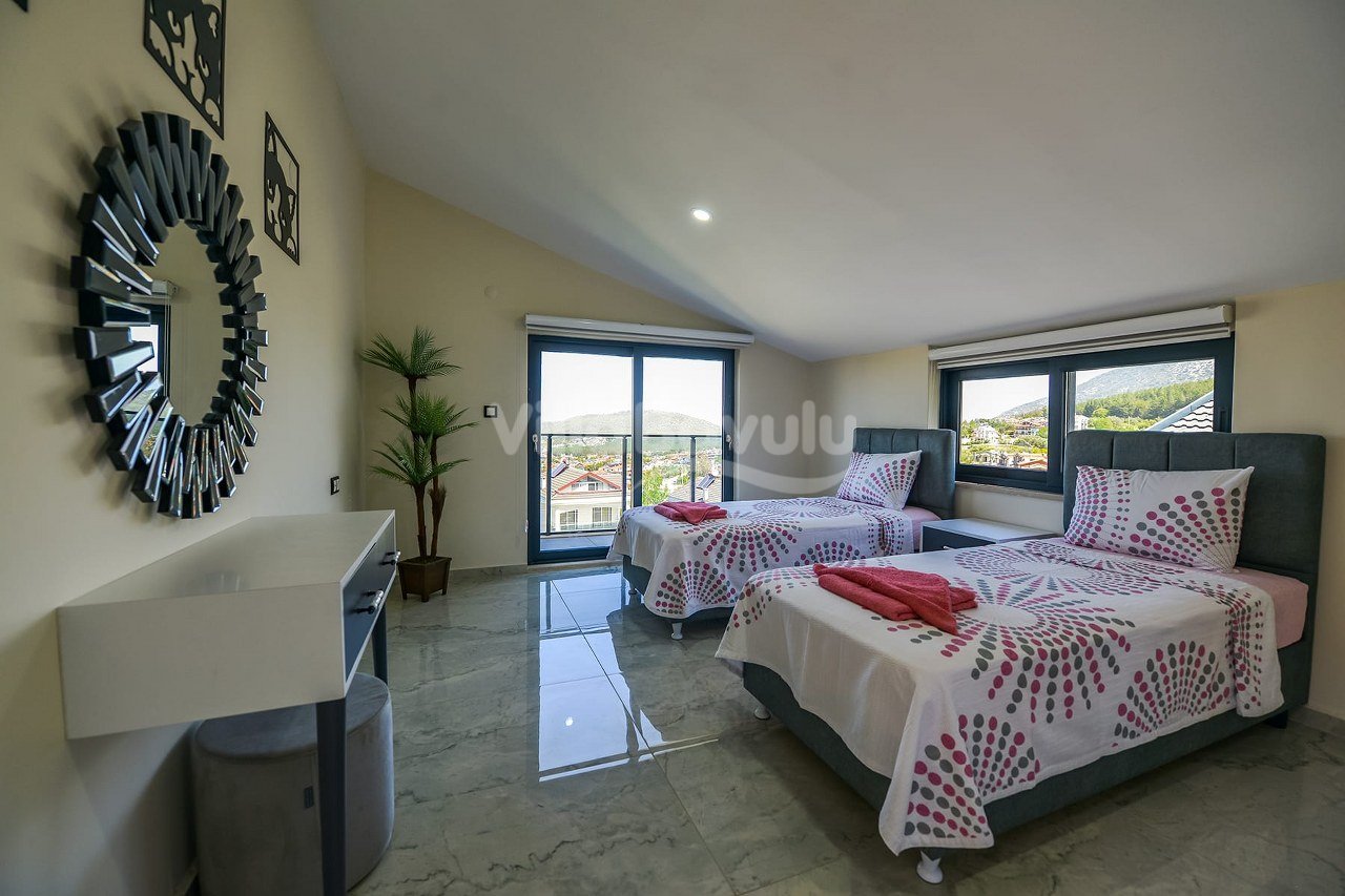 Villa Grand C Ölüdeniz plajına araç sürüşü ile 5 dk. mesafede , Ovacık beldesinde yer almaktadır. Villamız içerisinde bulunan hamam, sauna, jakuzi, kapalı ısıtmalı havuz gibi özellikler sayesinde konforlu ve lüks bir tatil imkanı sunmaktadır.Herbiri ebeveyn banyolu 4 yatak odası ile 8 kişilik konaklama kapasitesine sahip villamızın iç donanımı özenle seçilmiş kaliteli ürünler kullanılarak hazırlanmıştır.Bahçesi içerisinde havuzu , bahçe salıncağı , oturma grubu , mini çocuk parkı, şezlong ve şemsiyeleri bulunan villamız geniş aileler ve kalabalık gruplar için oldukça uygundur.