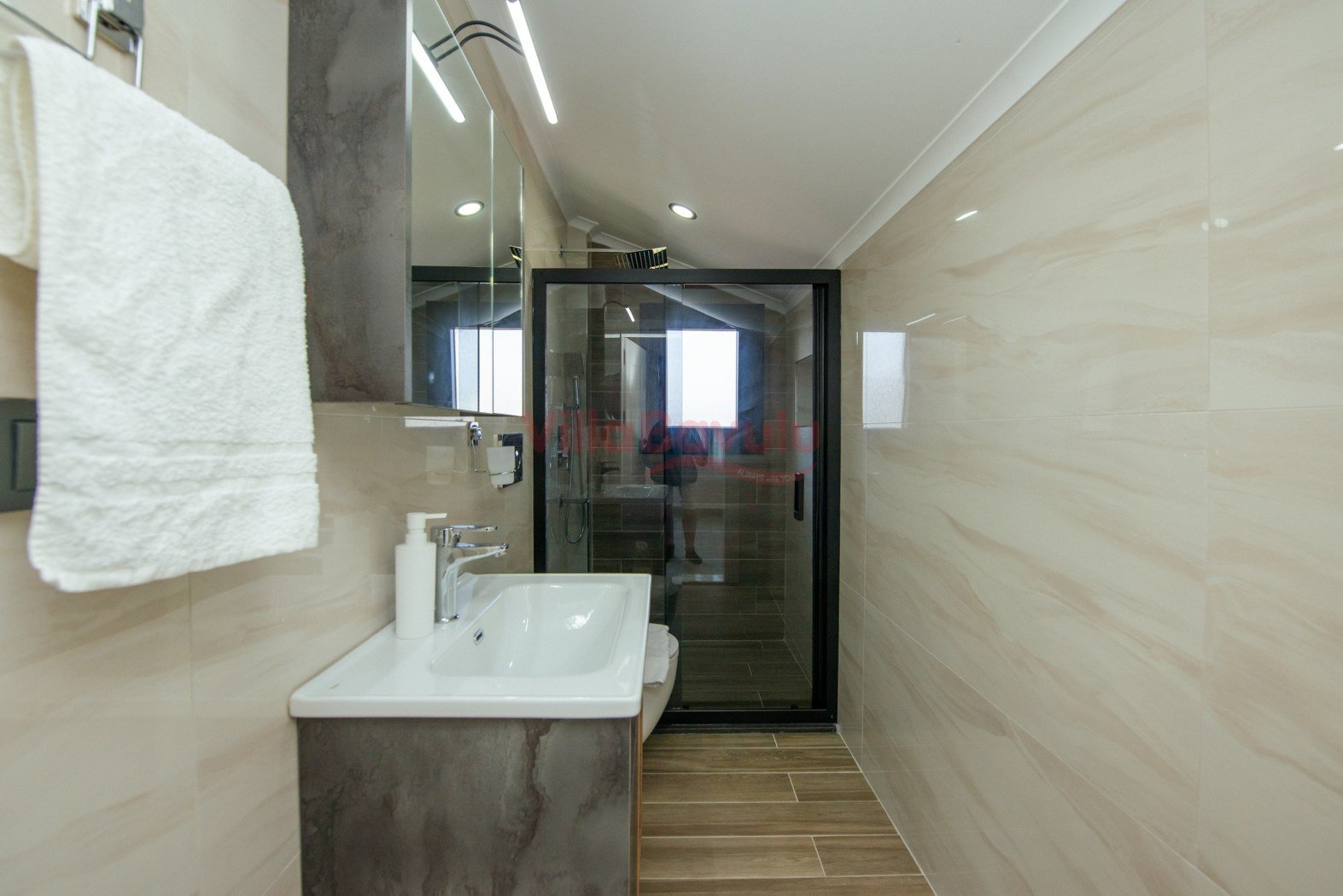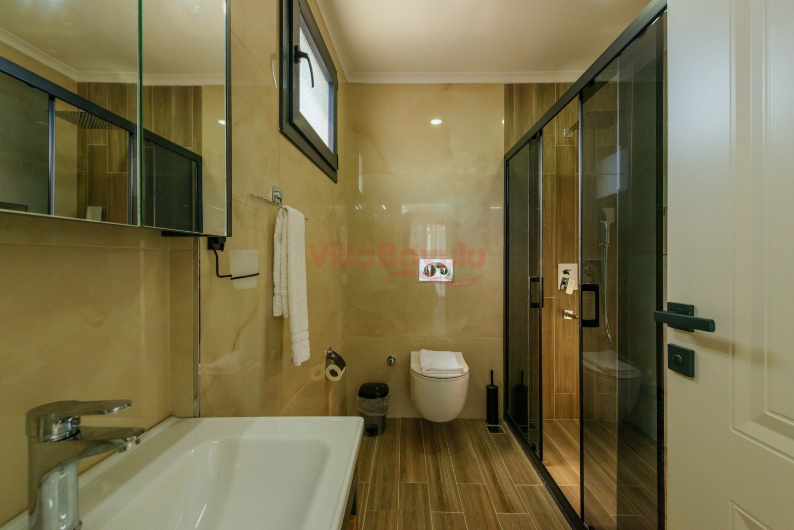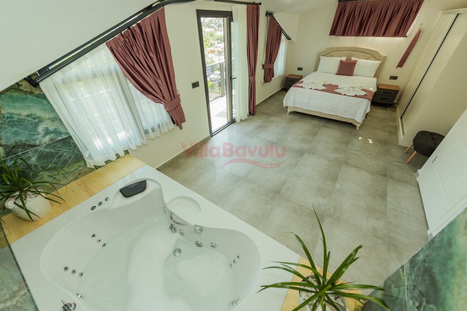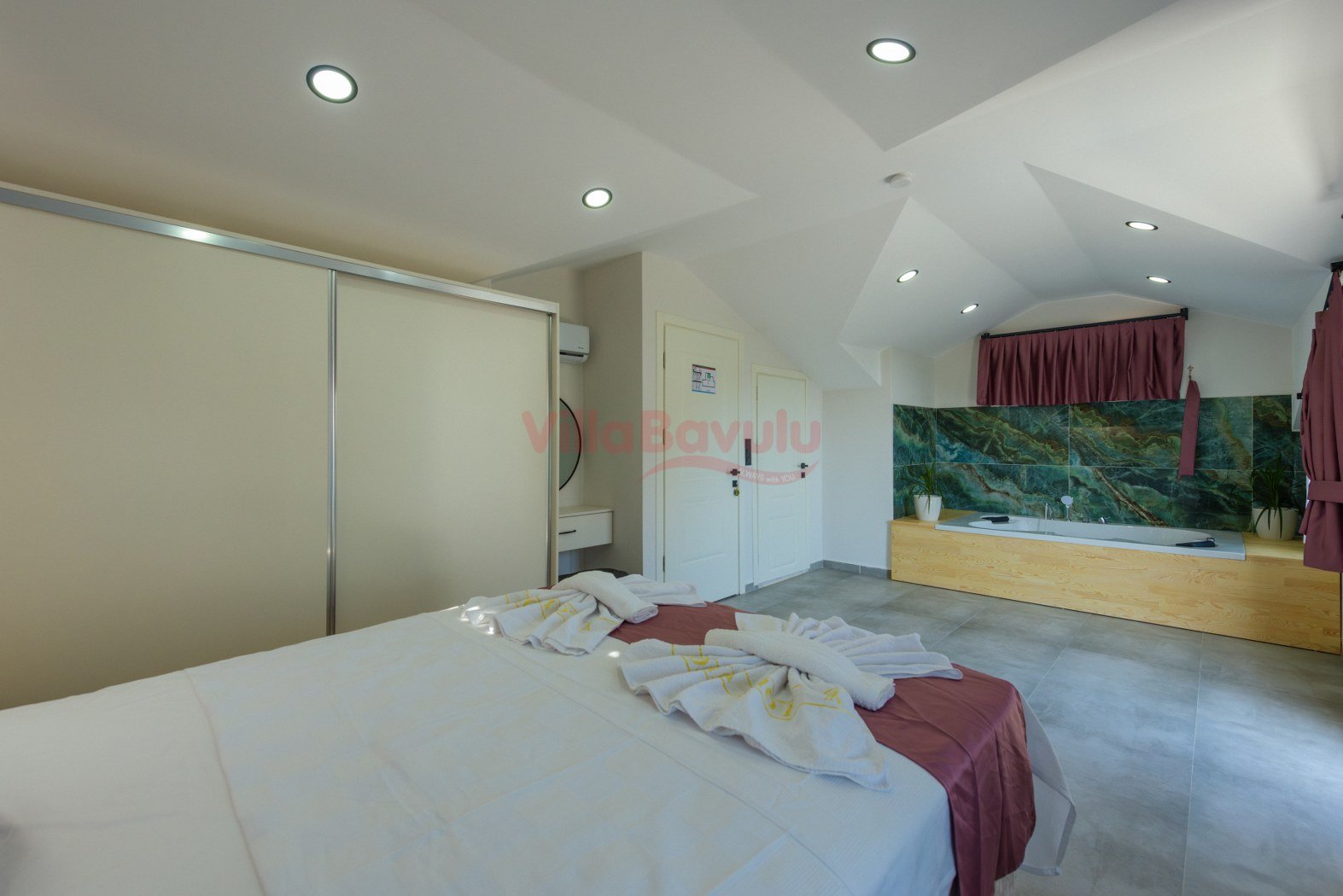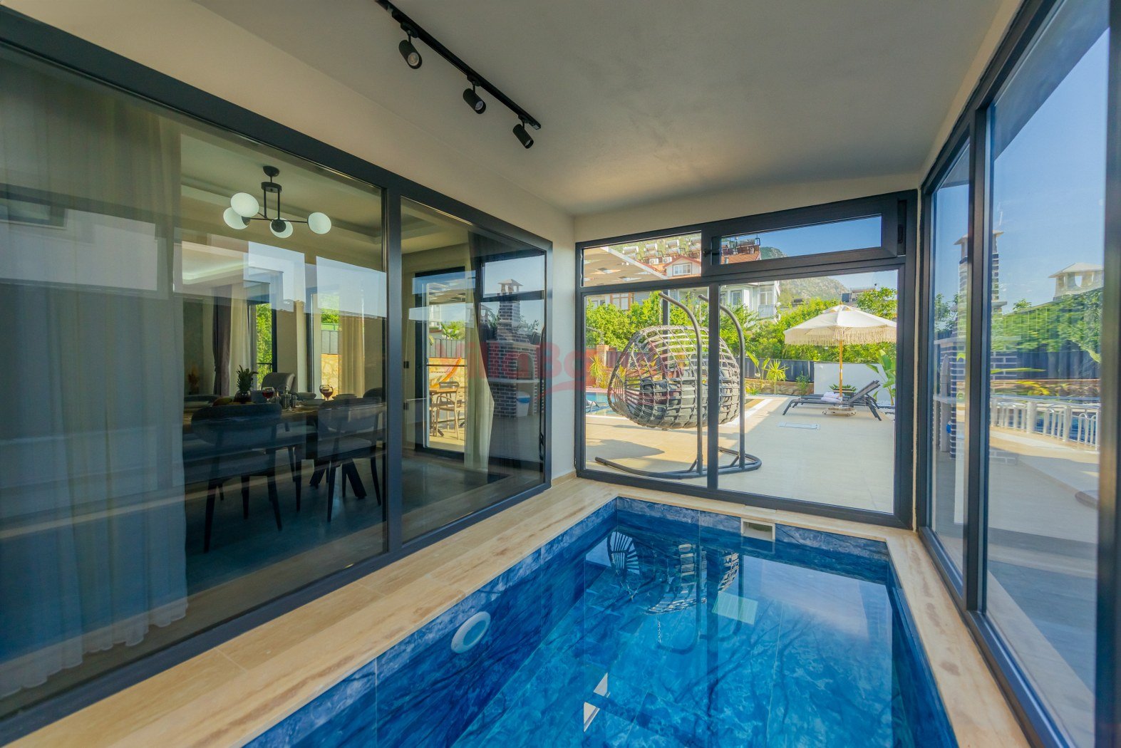 Merkezi konumu sebebiyle de popüler seçenekler arasında kendisine yer alan villamızın çocuk havuzu ve kapalı havuzu da bulunmaktadır.Genişliği ve ferahlığı ile göz dolduran villa bünyesinde kapasiteye uygun mobilyalar, ihtiyacınız olan tüm araç-gereçleri barındıran Amerikan tarzda, modern mutfak ve üç adet yatak odası mevcuttur. Konforunuz odaklı tasarlanan villanın tüm yatak odalarında klima ve özel kullanım banyo/wc bulunmaktadır. Villanın suit yatak odalarından birinde günün yorgunluğunu atmanızı ve tatilin keyfini çıkarmanızı sağlayacak bir adet jakuzisi de mevcuttur. Villanın geniş havuz terası ve müstakil bahçesinde yine kapasiteye uygun şezlong ve şemsiye, oturma alanı, salıncak, yemek masası ve barbekü alanı mevcuttur.