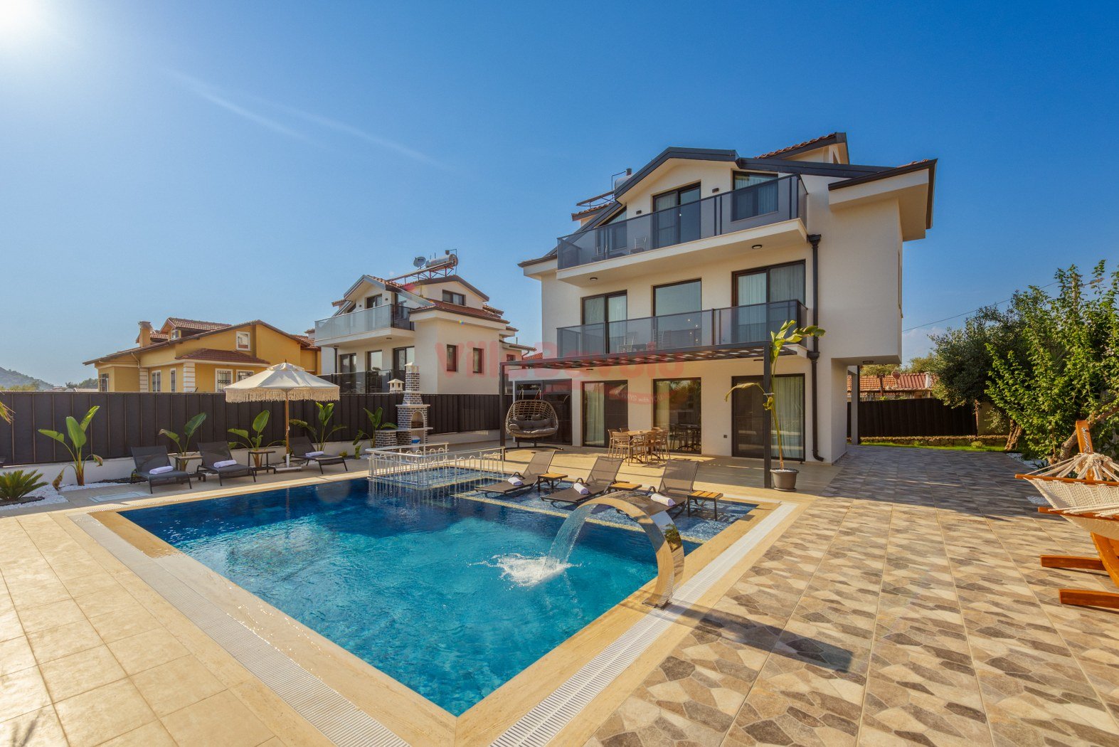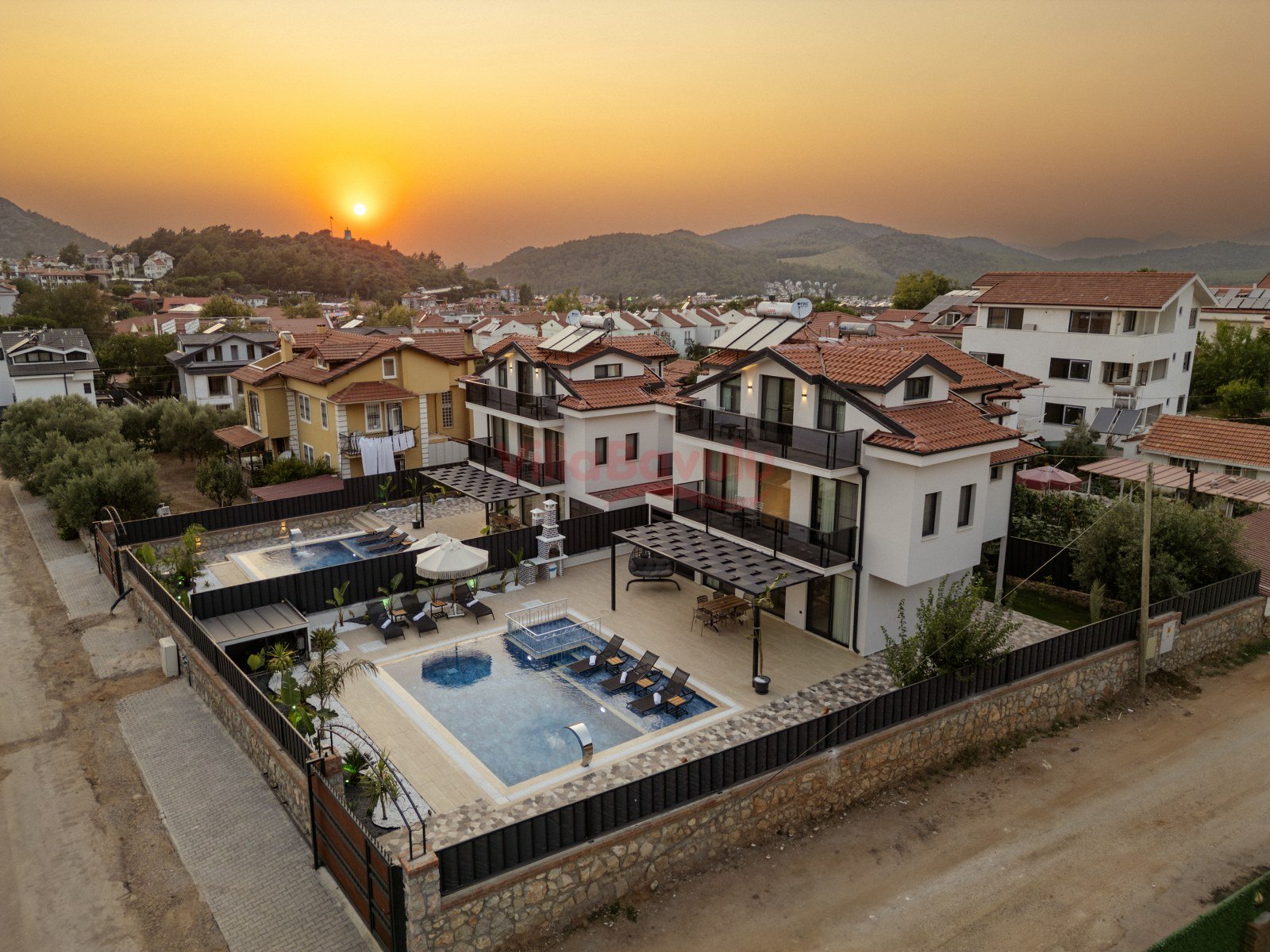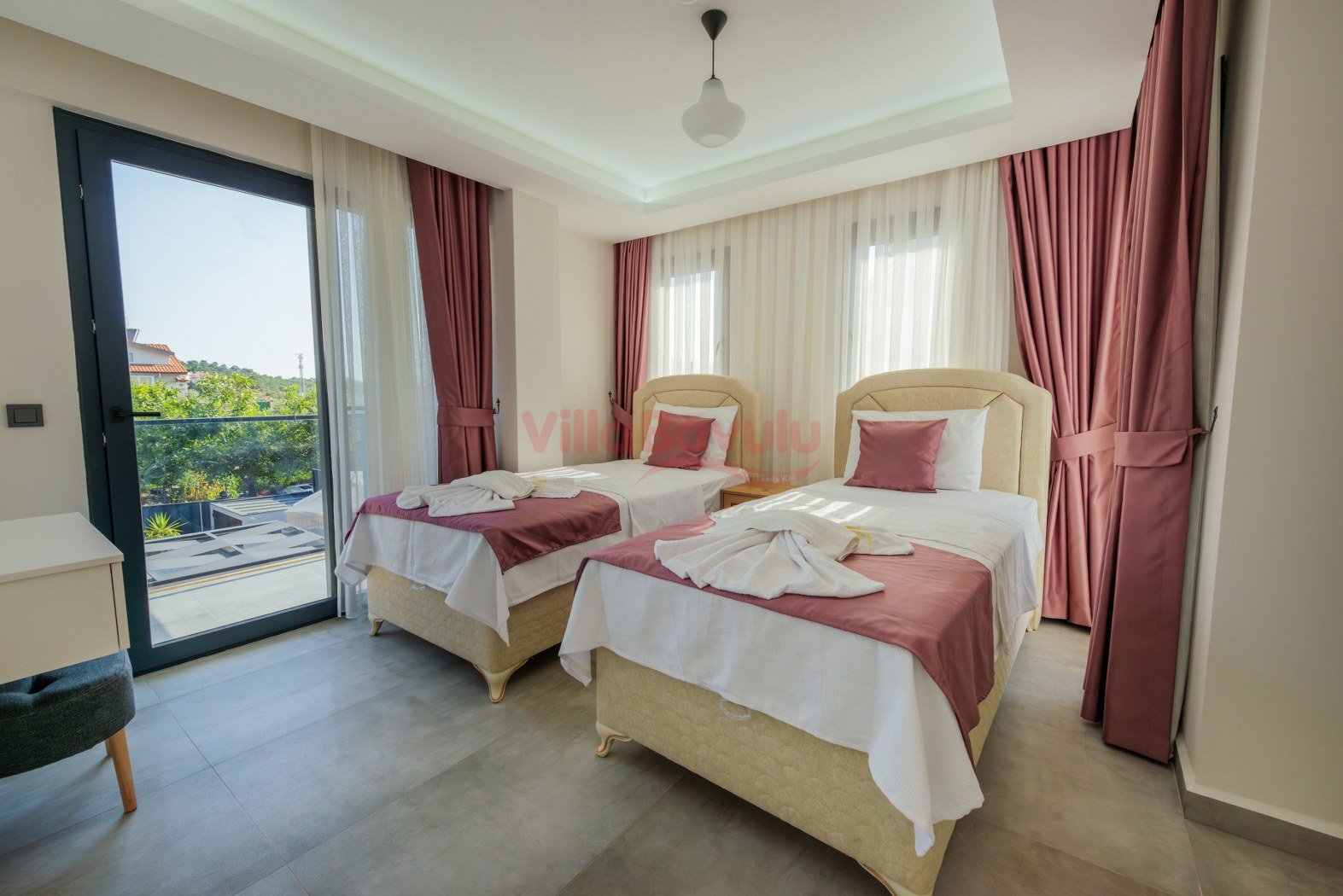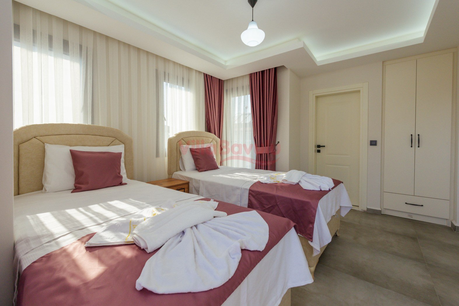 Merkezi konumu sebebiyle de popüler seçenekler arasında kendisine yer alan villamızın çocuk havuzu ve kapalı havuzu da bulunmaktadır.Genişliği ve ferahlığı ile göz dolduran villa bünyesinde kapasiteye uygun mobilyalar, ihtiyacınız olan tüm araç-gereçleri barındıran Amerikan tarzda, modern mutfak ve üç adet yatak odası mevcuttur. Konforunuz odaklı tasarlanan villanın tüm yatak odalarında klima ve özel kullanım banyo/wc bulunmaktadır. Villanın suit yatak odalarından birinde günün yorgunluğunu atmanızı ve tatilin keyfini çıkarmanızı sağlayacak bir adet jakuzisi de mevcuttur. Villanın geniş havuz terası ve müstakil bahçesinde yine kapasiteye uygun şezlong ve şemsiye, oturma alanı, salıncak, yemek masası ve barbekü alanı mevcuttur.
